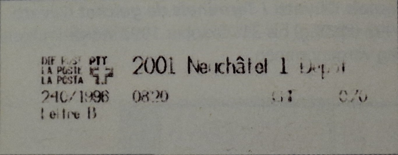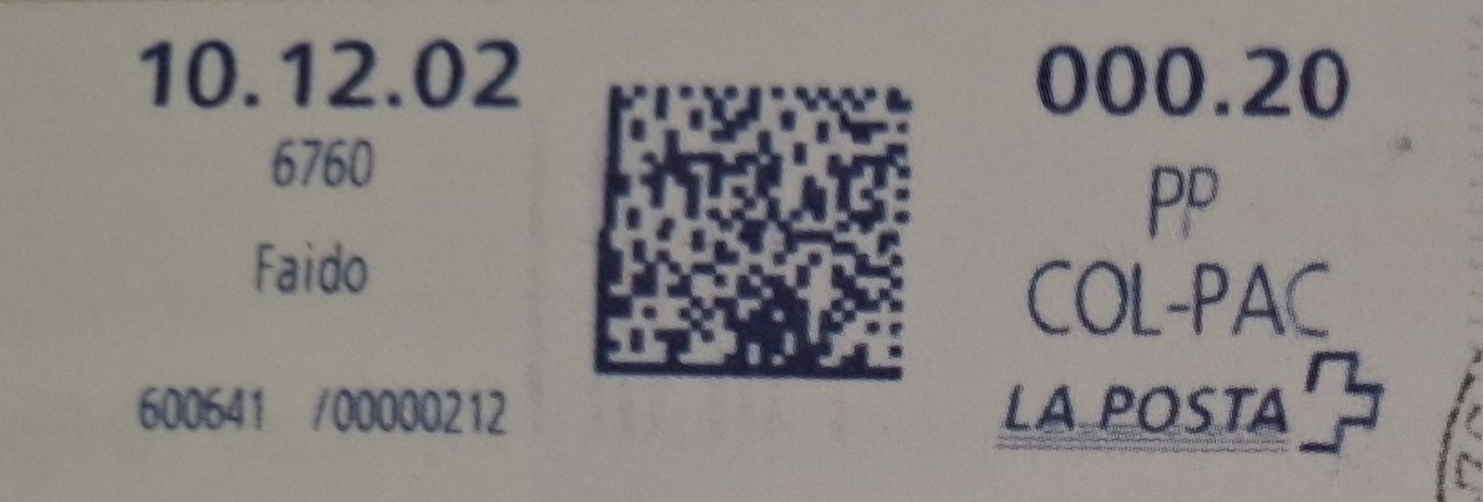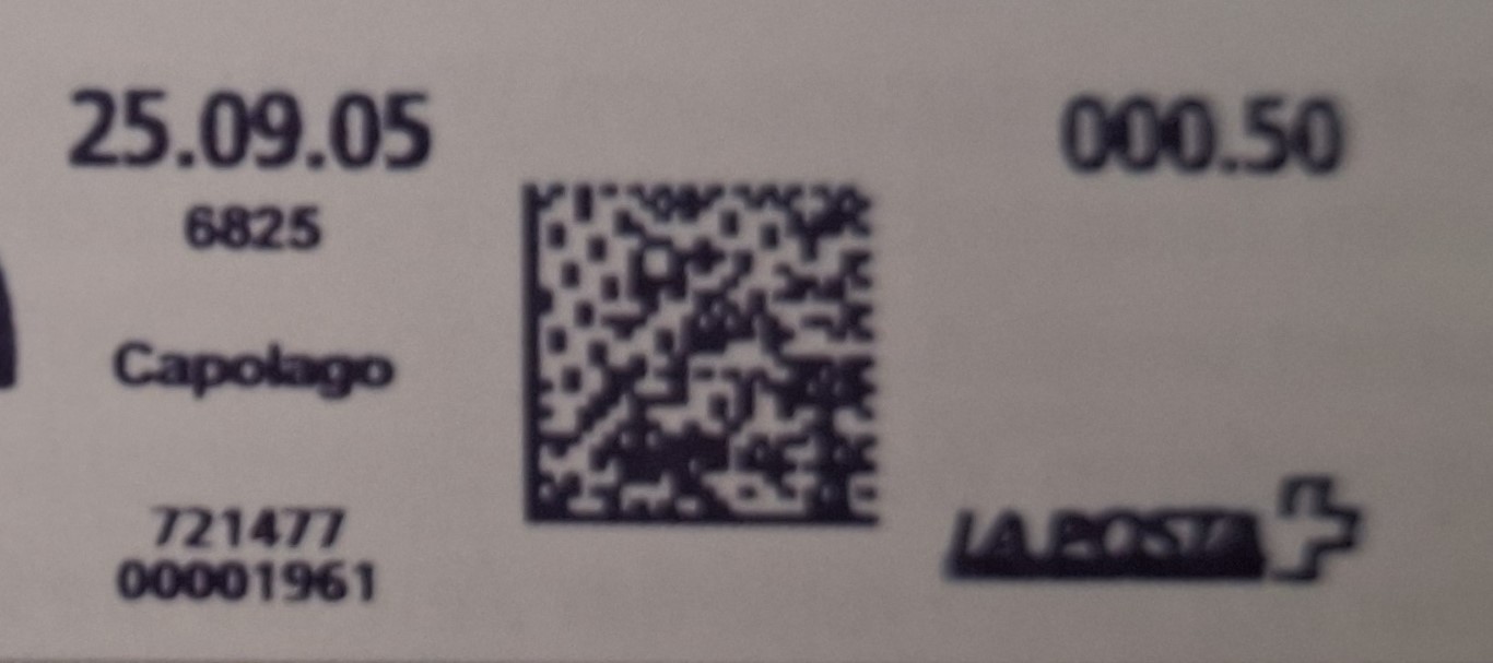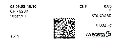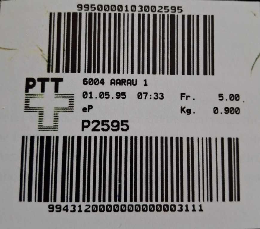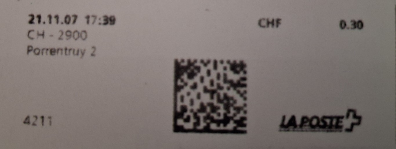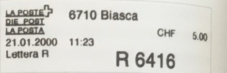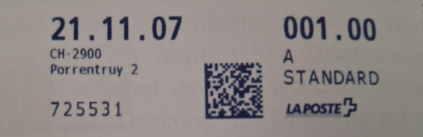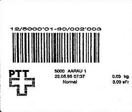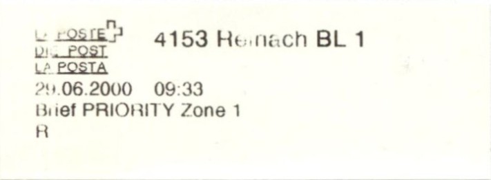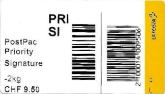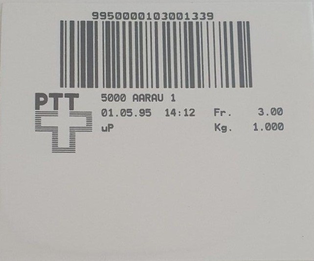 | | | - "La Poste Die Post La Posta" gefolgt von "PTT#" | P-Logo PTT# |