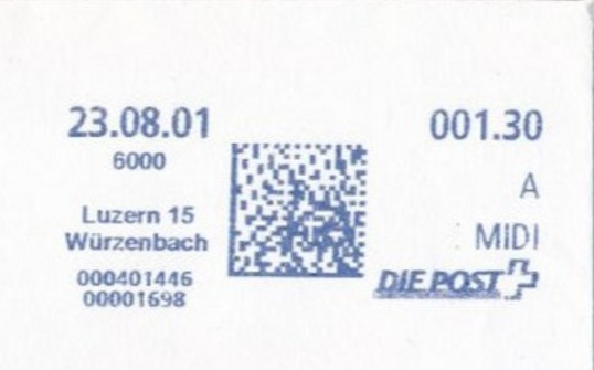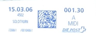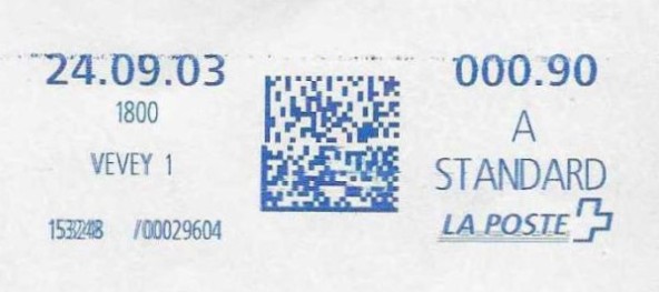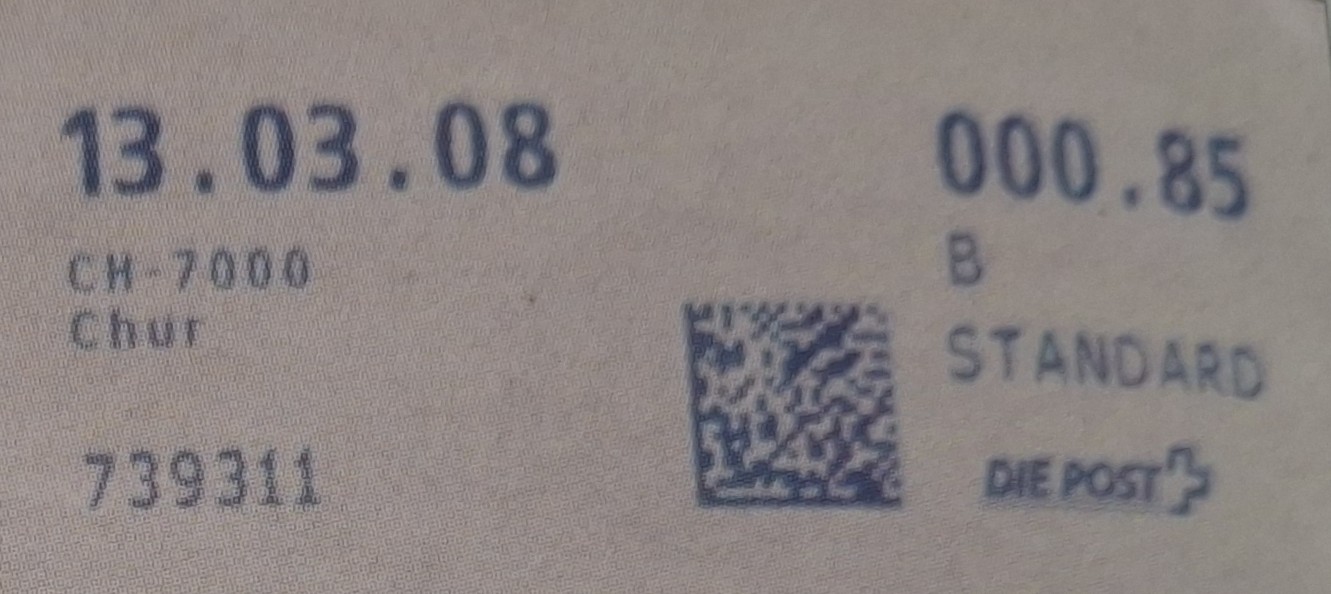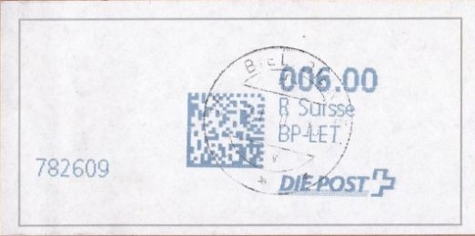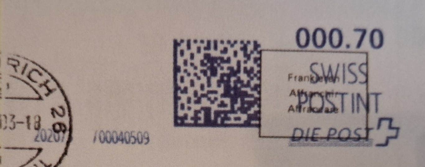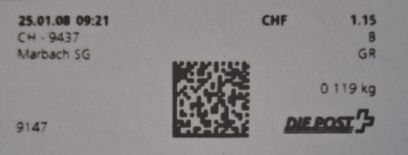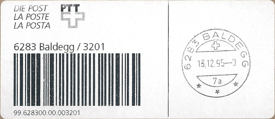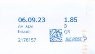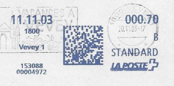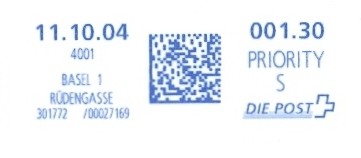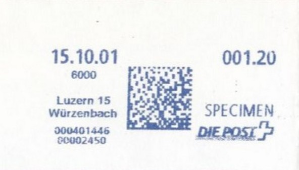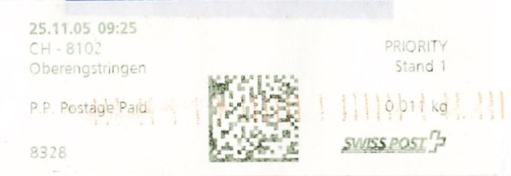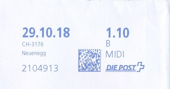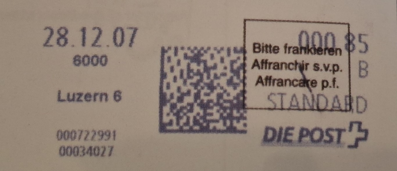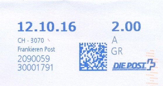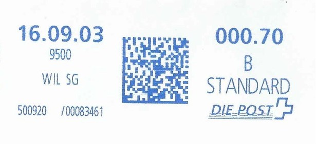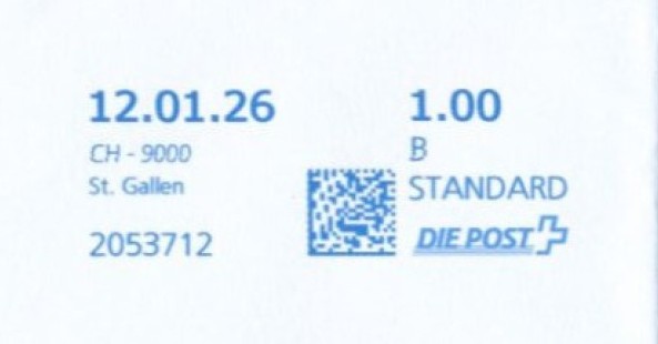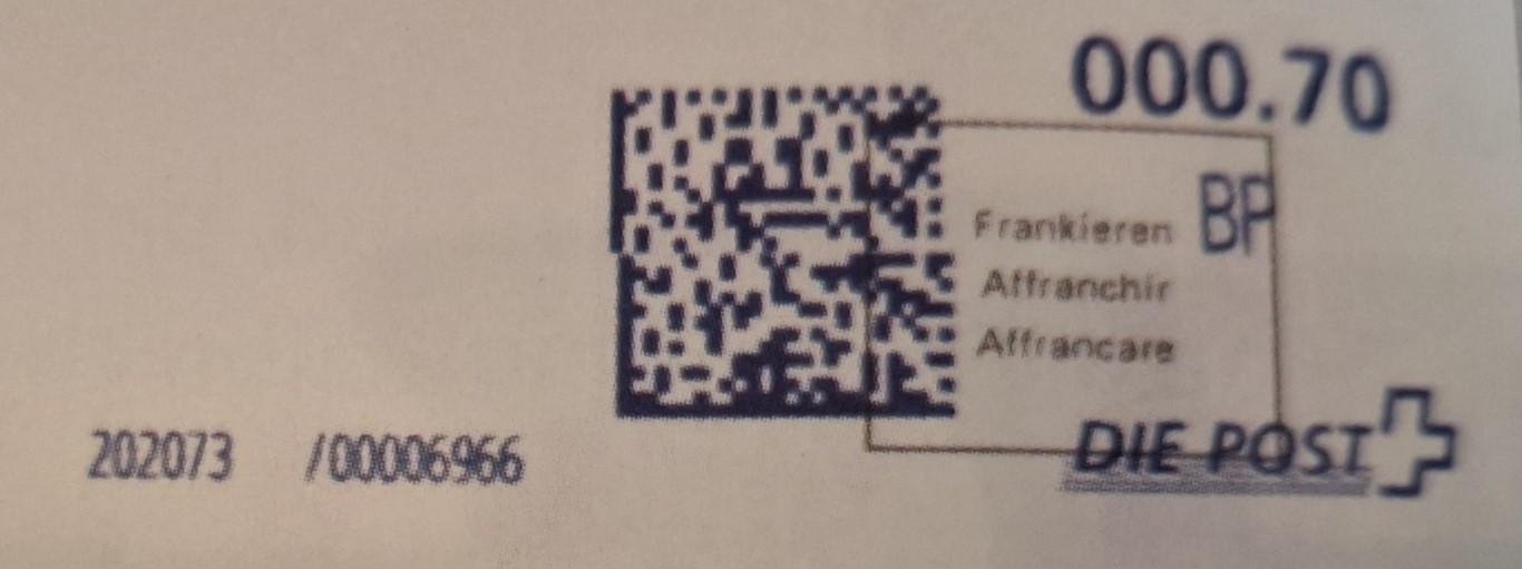 | | Ab 1994 werden Barcodes und QR‑Codes auf der Frankierung angebracht; zudem kamen andere Frankiermaschinen zum Einsatz, und es erschienen die Webstamps. Diese Aufstellung versucht, dieses bislang kaum beschriebene Gebiet klarer und umfassender darzustellen. Wie bereits erwähnt, liefert der SBK‑Katalog nicht immer vollständige Informationen. Die genannte Website bietet gelegentlich zusätzliche Hinweise zur digitalen Frankierung, doch dieses Sammelgebiet verdient eine systematische und übersichtliche Darstellung, die ein vollständigeres Bild vermittelt. | |