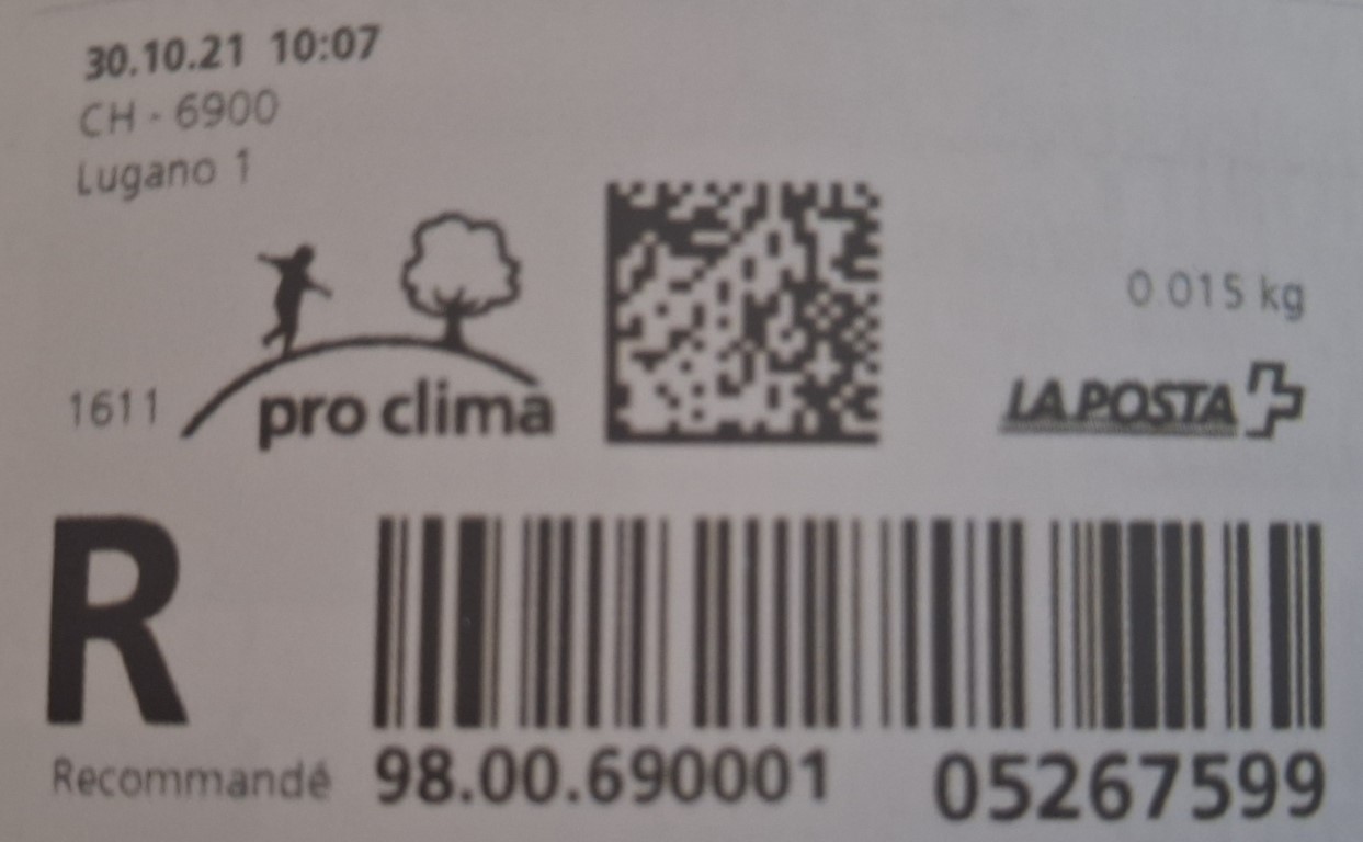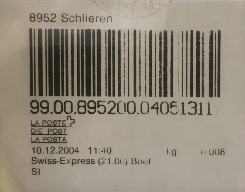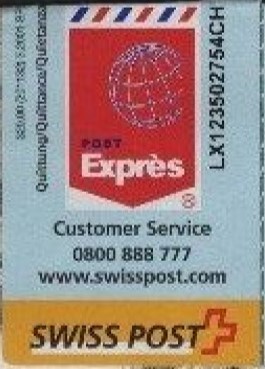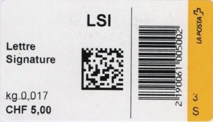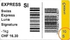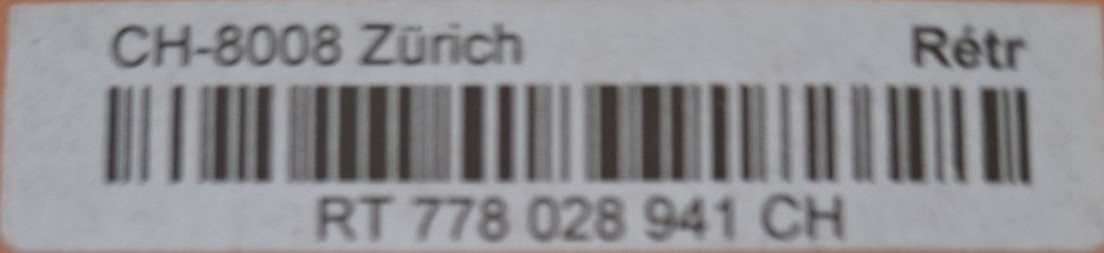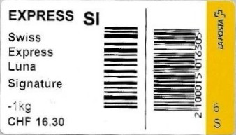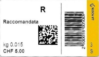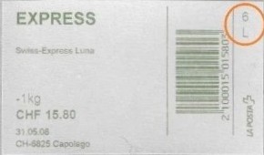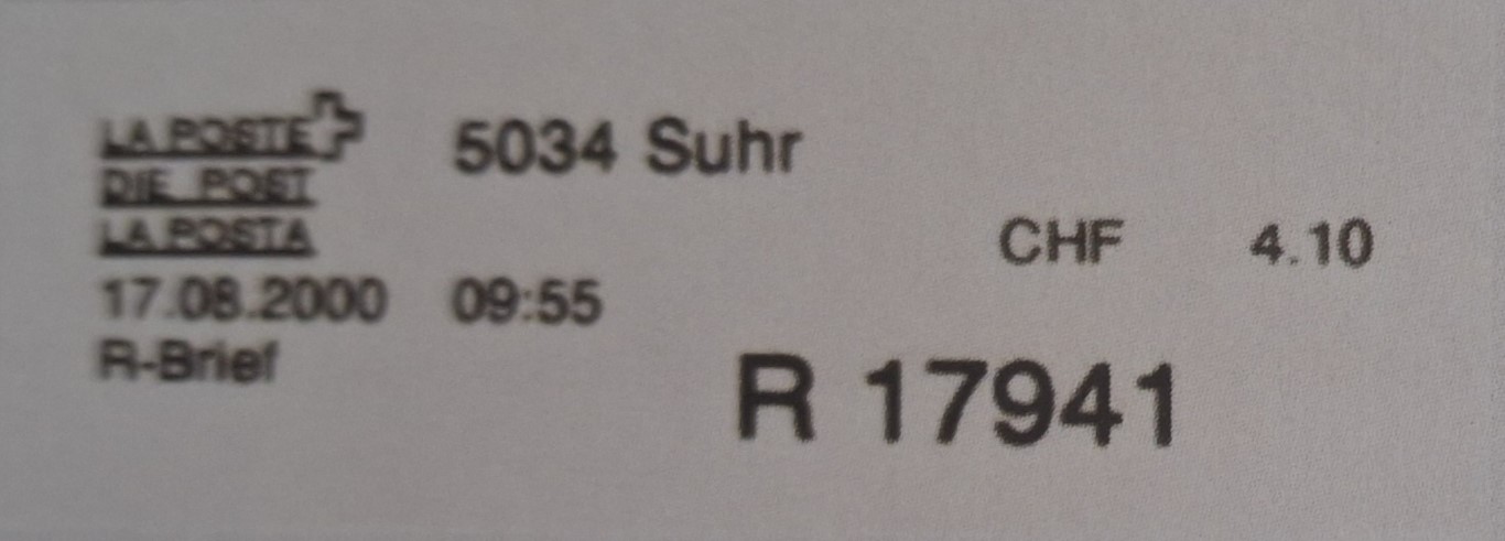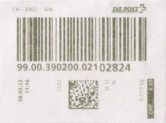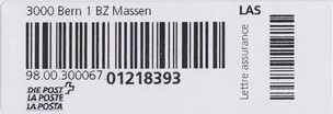 | | | - "RR 000 000000 CH" ========= (2x2 Buchstaben und 3 und 6 Ziffern) | E-Code |