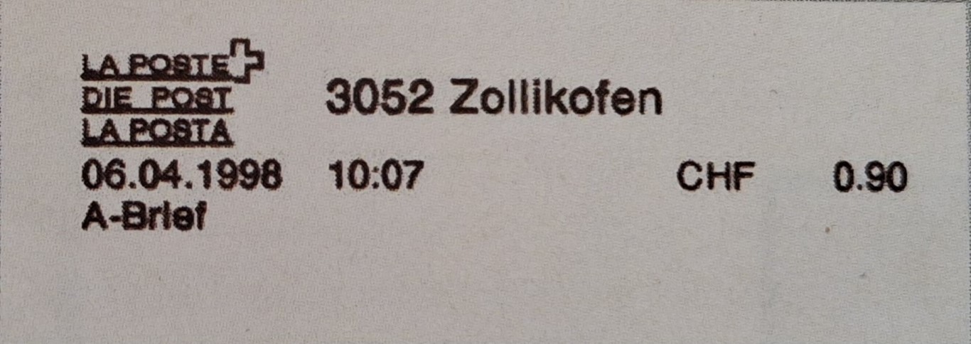 | | Geschichtliches 3 (Information auf der Website en.wikibooks.org/wiki/International_Postage_Meter_Stamp_Catalog/Switzerland) | |