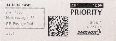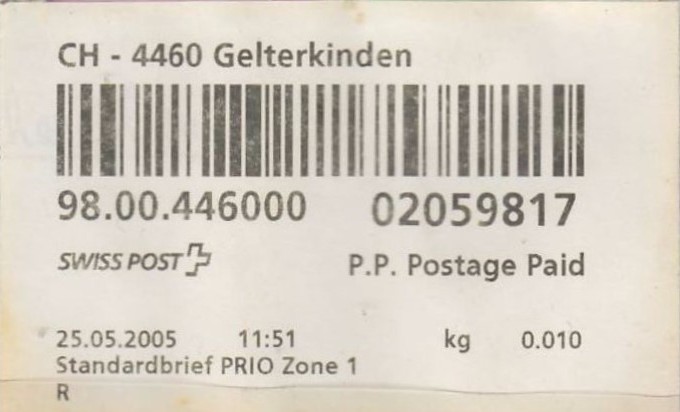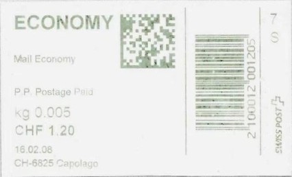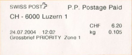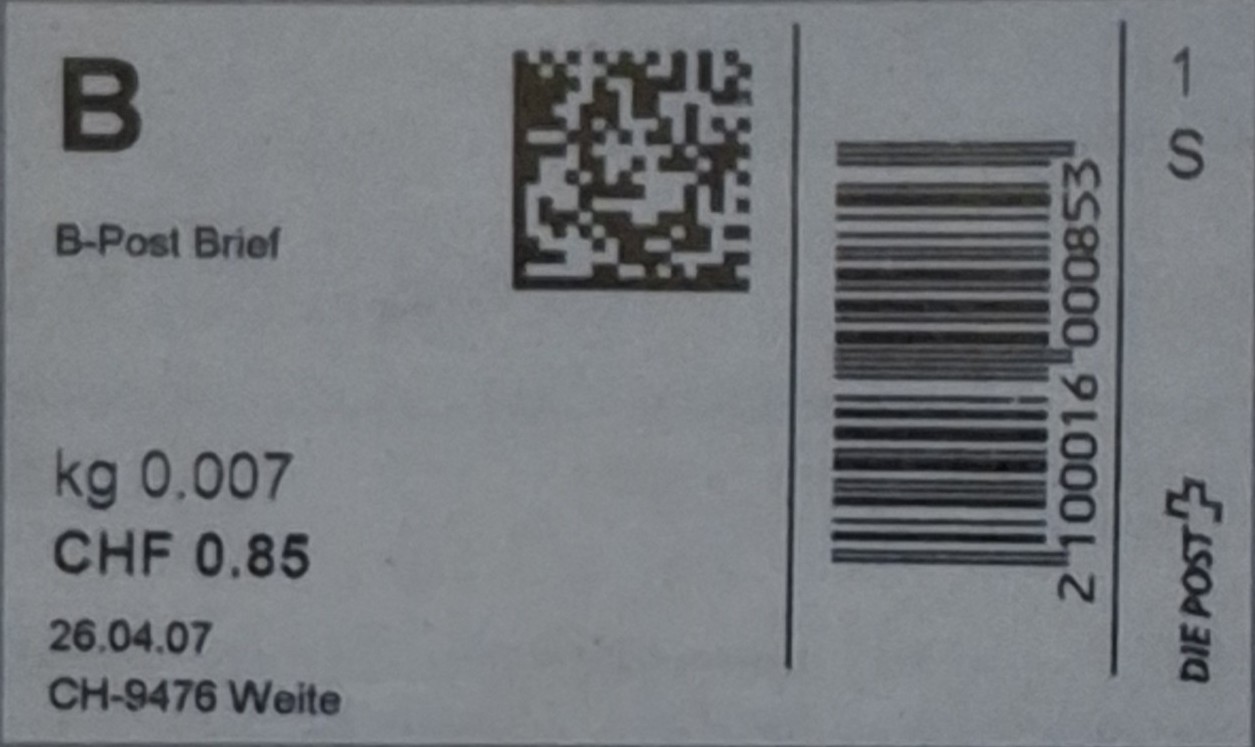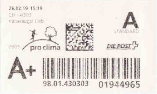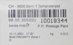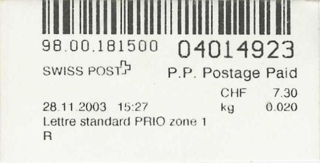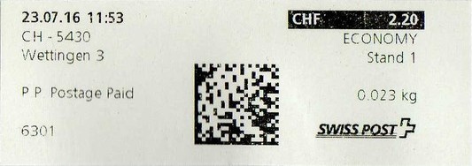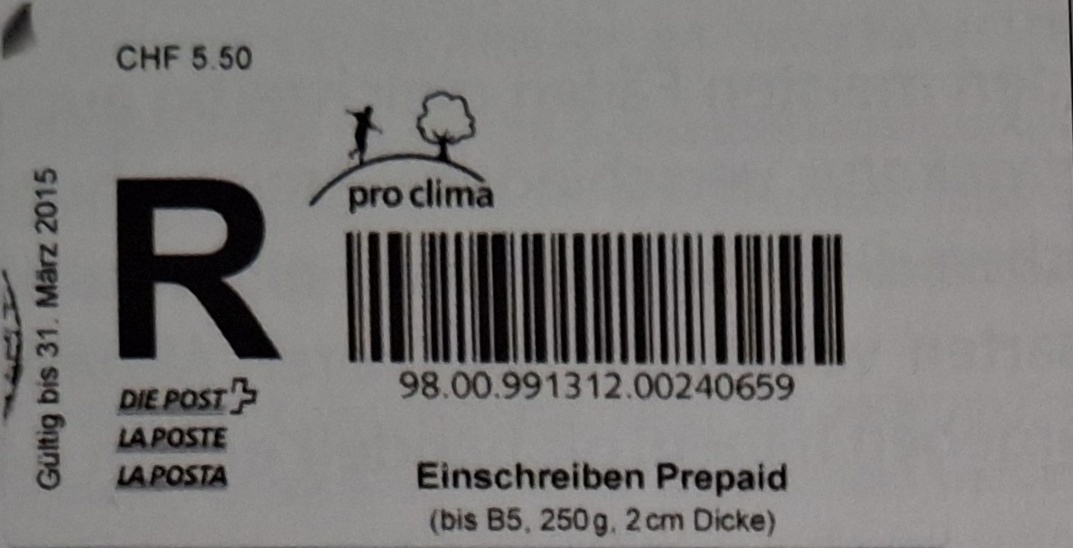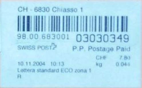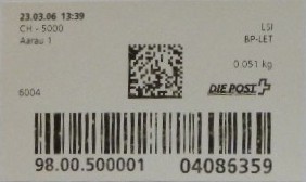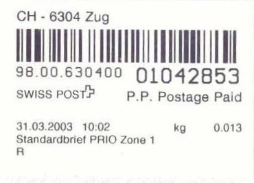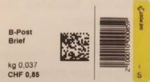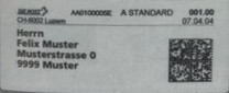 | | | ohne E=Code, ohne Portowert, ohne Plz. | Kein Etikett, sondern auf Umschlag gedruckt |