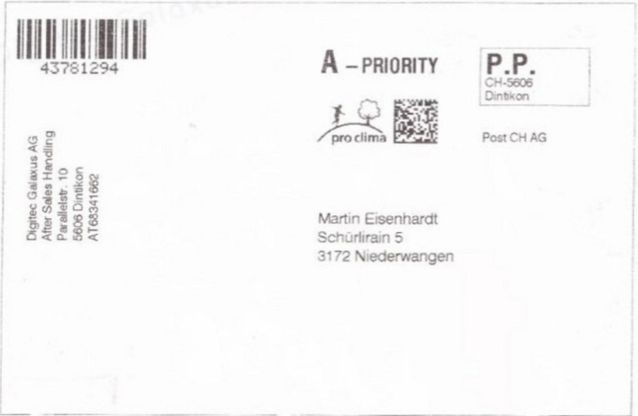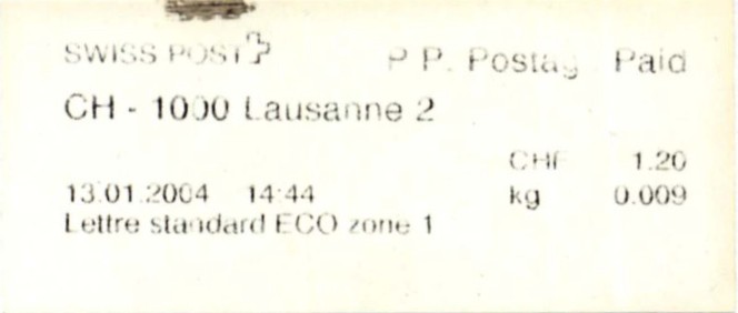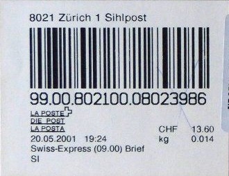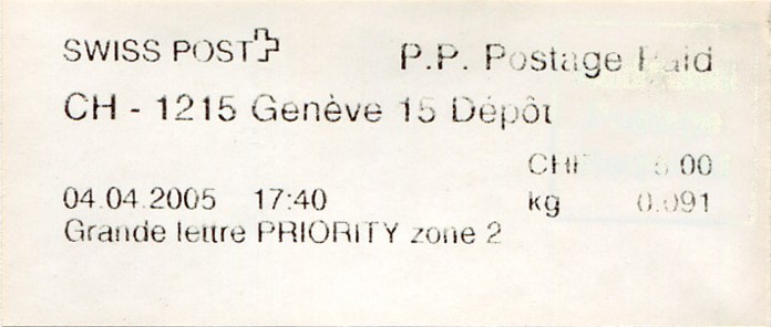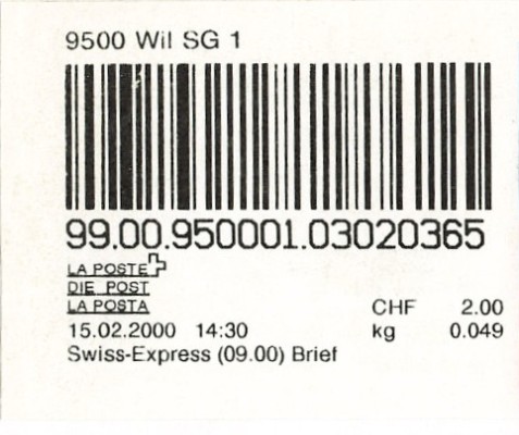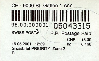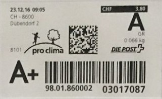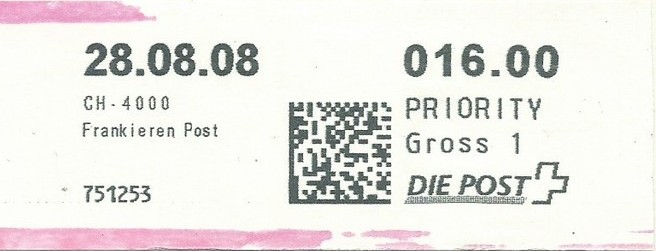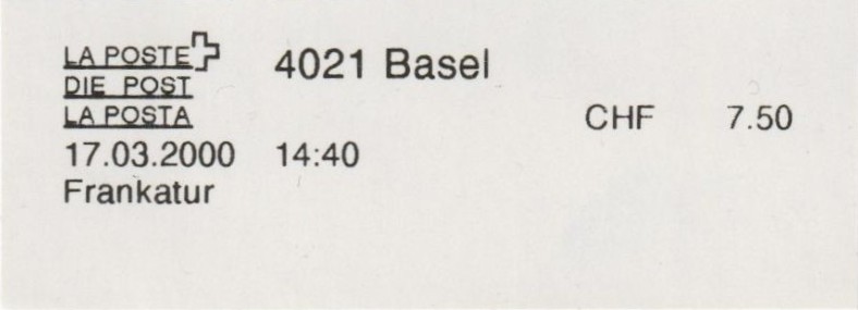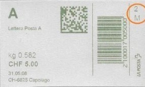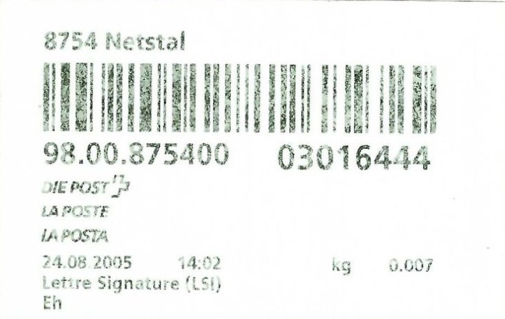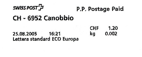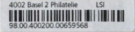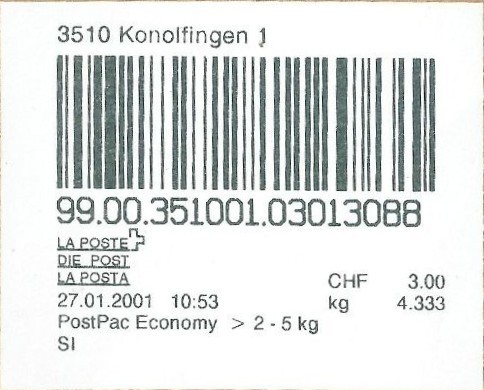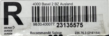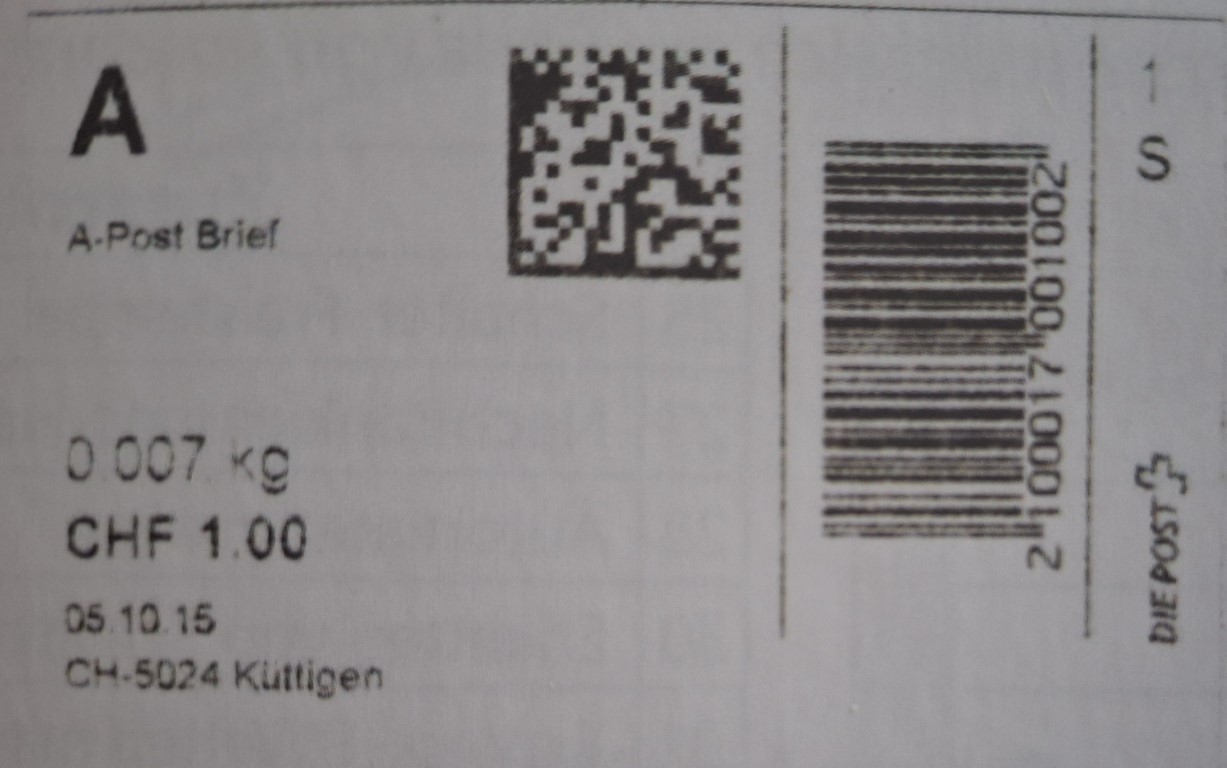 | | | ohne E=Code, ohne Portowert, ohne Plz. | Kein Etikett, sondern auf Umschlag gedruckt |