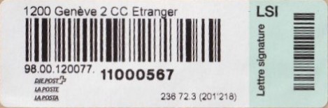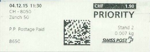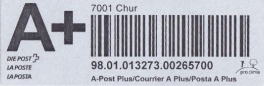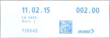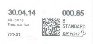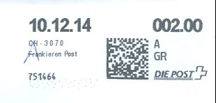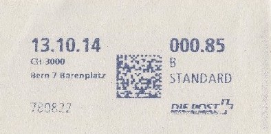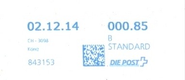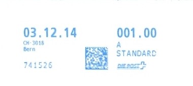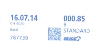 | 2014. | p987.a | | idem -- E+Code - CH-Plz | - Swiss Post# |