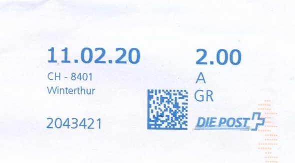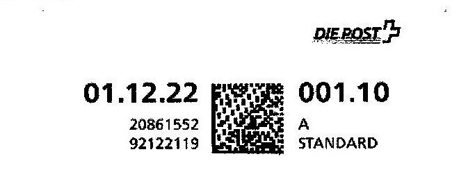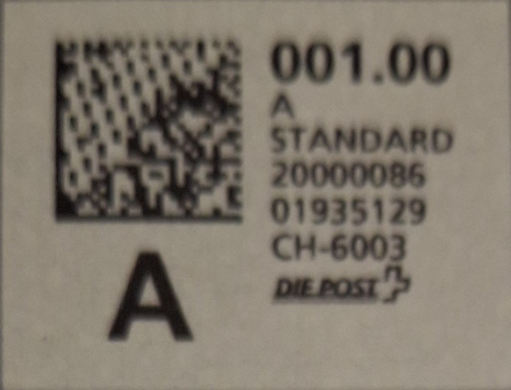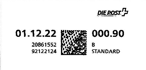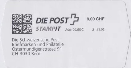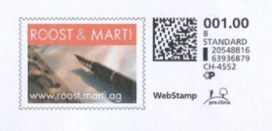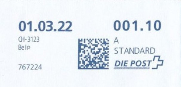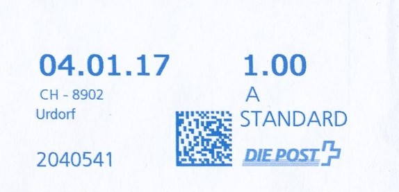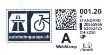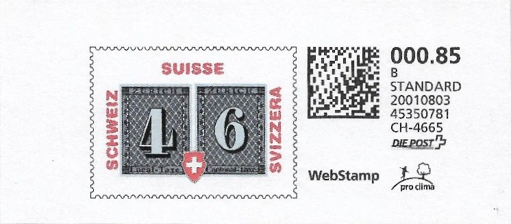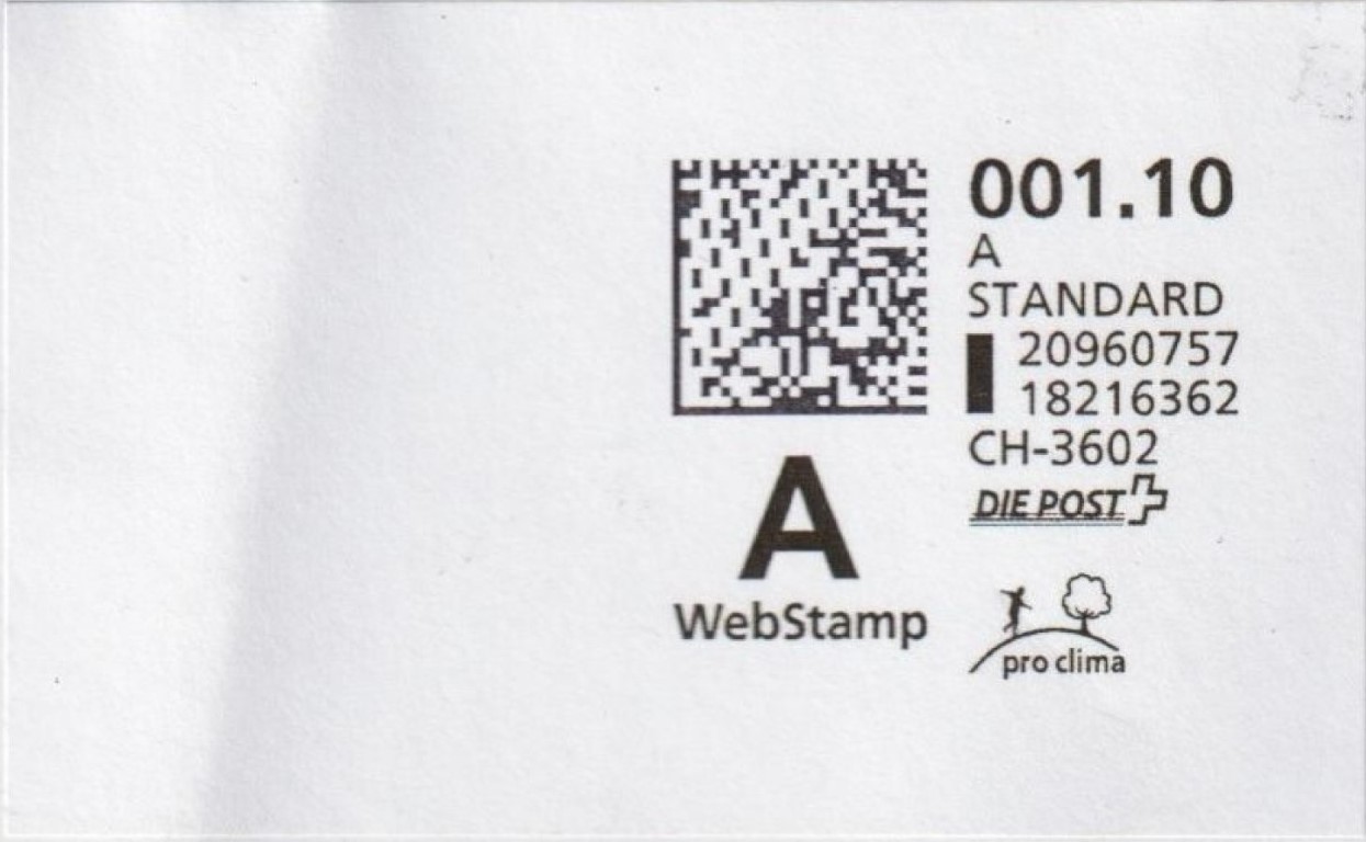 | | | A - Webstamp - A Standard - Gratis Webstamp der Post CH AG | Erklärungscode + |00000000 |00000000 |