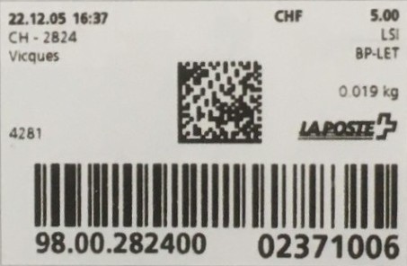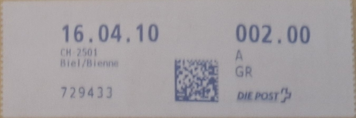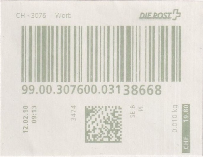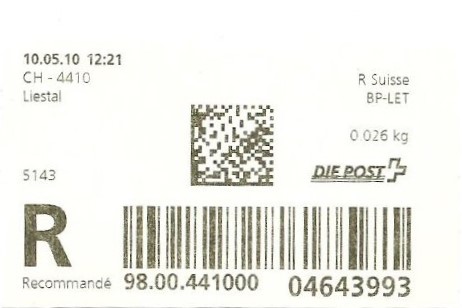 | 2010. | p981.a | | idem -- E+Code - CH-Plz | - Die Post# |