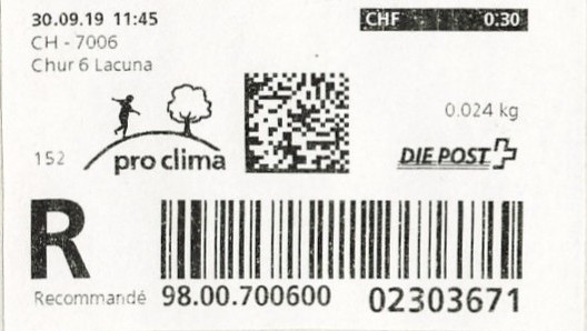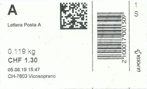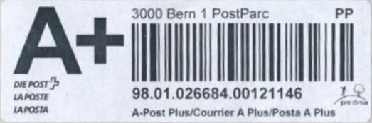 | 2019. | p990 | | idem -- E+Code - CH-Plz | - Swiss Post# |