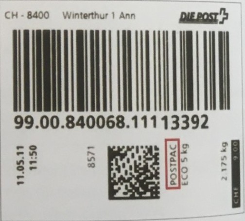 | | | - Sonstiges (z.B.: Post CH) | (ggf. in der Beschreibung der Etiketten angegeben) |