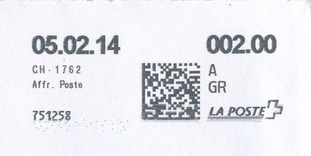 | 2014. | p984.d.2 | | idem -- E+Code - CH-Plz - K-Logo | - La Posta# |
