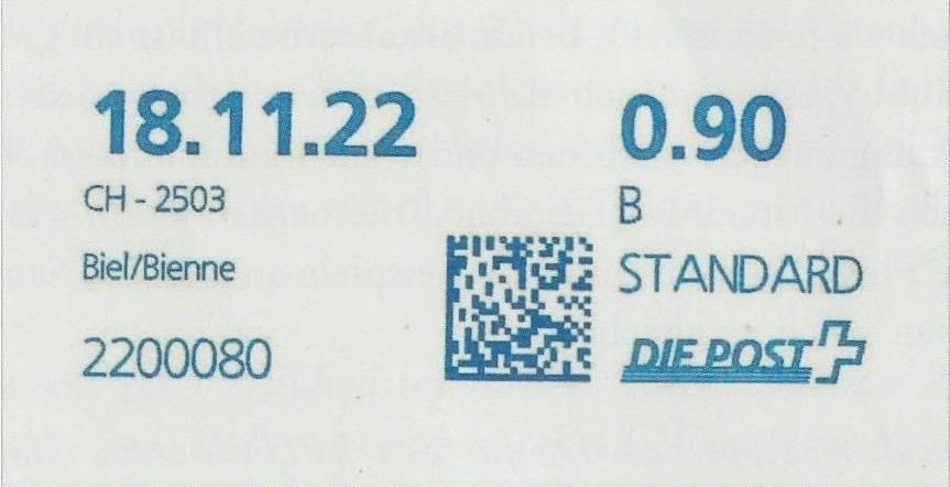 | 2022. | p989.b.1 | | idem -- E+Code - CH=Plz - K-Logo | - Die Post# |