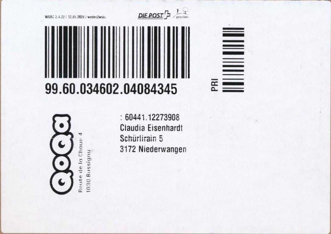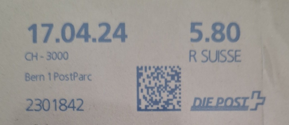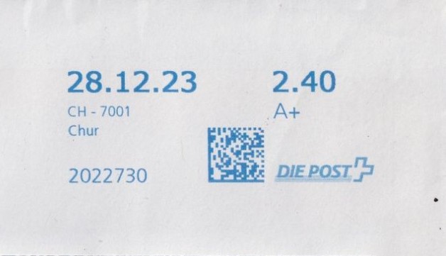 | 2024. | p987.c | | idem -- E=Code - CH-Plz - K-Logo | - Swiss Post# |