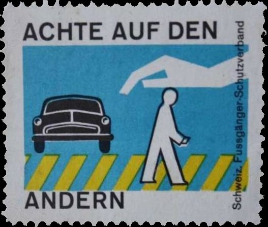 | 1955. | x028.- | Achte auf den Andern - Schweiz. Fussgänger-Sch.... | gezähnt | == | 3,5 | x | 4,0 | cm | blau, gelb, schwarz | 4.50 | Foto | |