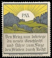 | -1918. | x064.a | Pax - Den Krieg nun bekriege das neue Geschlecht .... | gezähnt | [] | 5,0 | x | 4,3 | cm | mehrfarbig | 5.00 | |